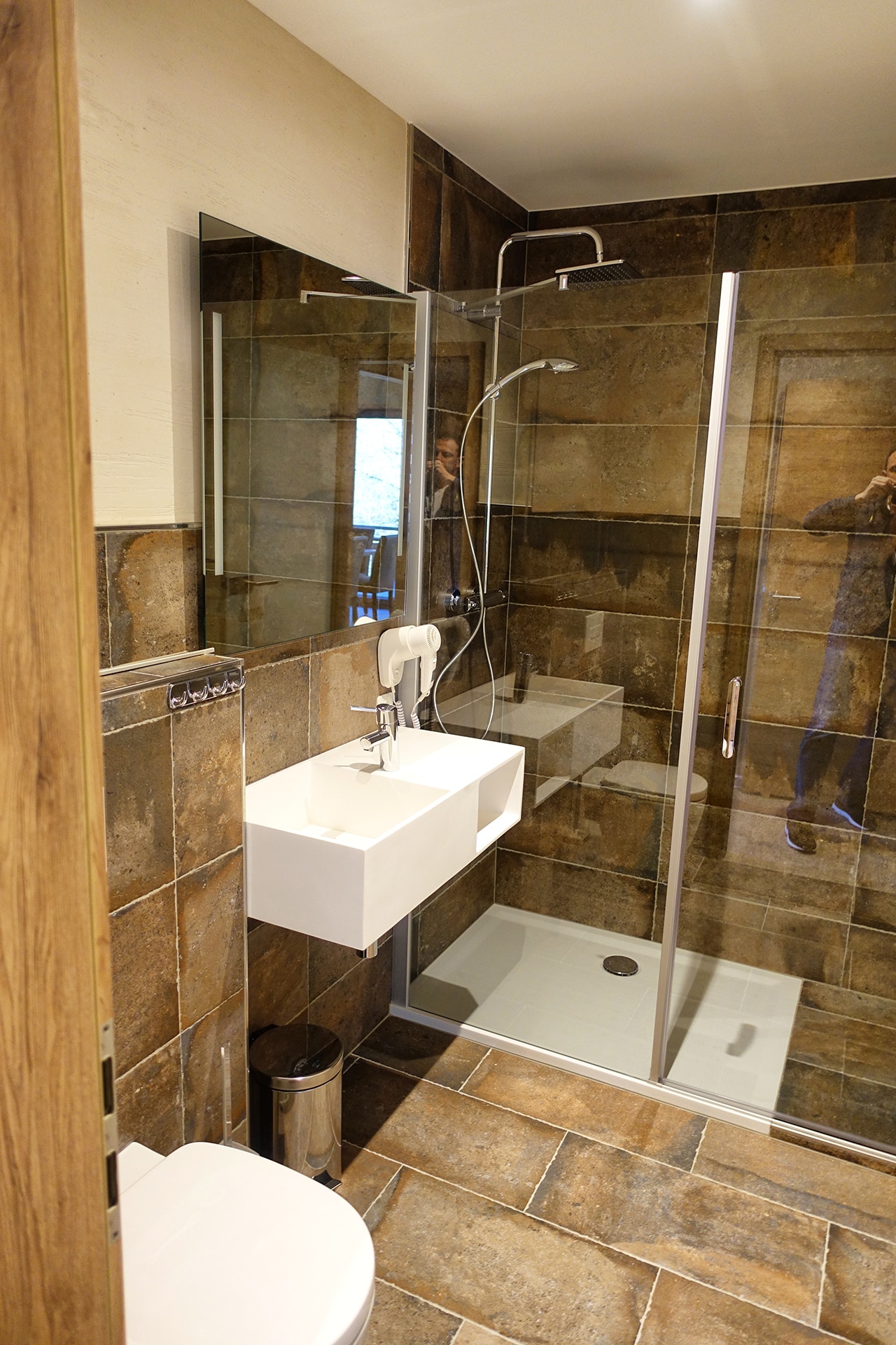 Jedes Zimmer besitzt ein Bad mit Dusche, WC und Waschbecken.